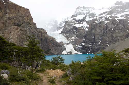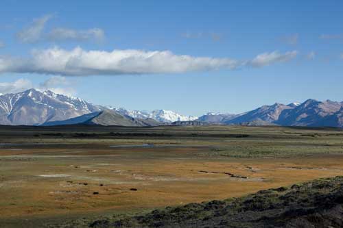 hier stürzt eine 80 Meter hohe Eiswand herunter.... südlich vom Lago Viedma führt eine ca. 70km lange Stichstrasse zur Estancia Helsingfors, die sich auf den Tourismus eingestellt hat und nur noch Zimmer vermietet los gehts zu einer 6stündigen Wanderung zu einem Teil des Viedma Gletschers nach 3 Stunden bergauf und vielen Pausen haben wir es geschafft Weiter gehts nach El Chalten und dem Fitz-Roy Massiv hier die berühmt berüchtigte Ruta 40, eine breite, z. Teil sehr schlechte Schotterpiste kleiner Abstecher an den Lago Cardiel, wobei man an den See nicht wirklich hinkommt Der Nationalpark Perito Moreno die Berge schillern in allen möglichen Farben und die Seen sind voller Flamingos auch die Schneeberge im Hintergrund dürfen nicht fehlen schmale, idyllische Straße bei Lago Posadas, die über den Passo Rodolfo nach Chile führt