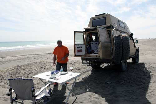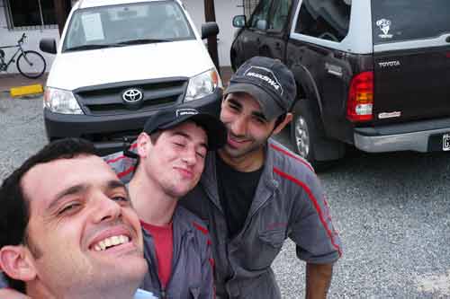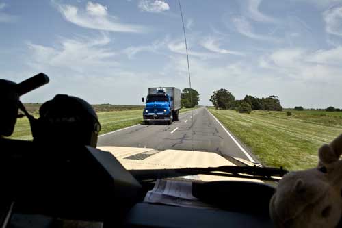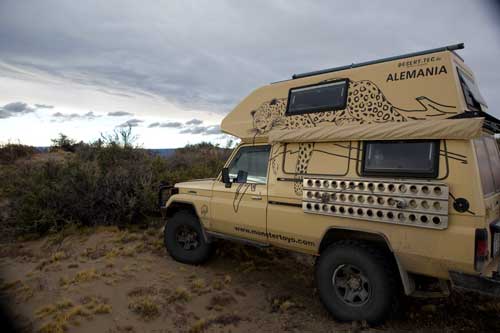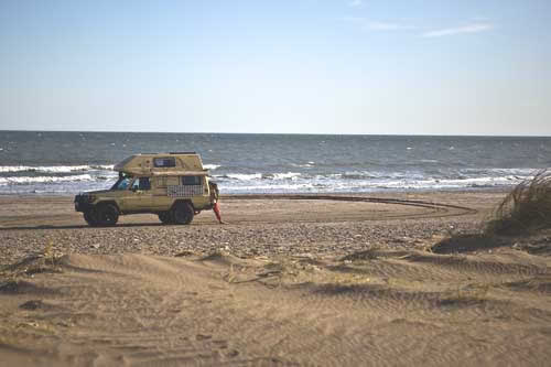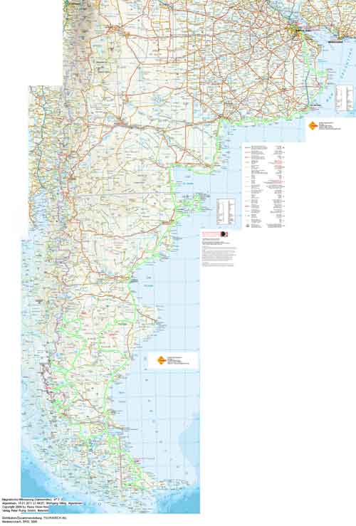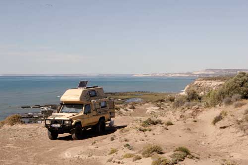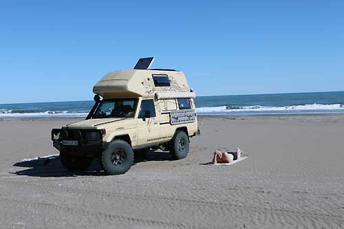 Buenos Aires ist eine wundervolle Stadt, voller Leben und mit sehr gegensätzlichen Erscheinungsbildern, grüne Parks, Hochhäuser, moderne Geschäfte, eine Querstrasse weiter viele kleine Geschäfte mit allem Möglichen. Ausgehend vom Stadtzentrum werden die Häuser immer kleiner und kleiner und baufälliger. Das berühmte Cafe Tortoni, von aussen fast nicht zu sehen. Fußgängerzone "Florida" - dort findet jeder Tourist das passende Souvenir. City-Tour durch Buenos Aires La Boca, hier hat jedes Häuschen eine andere Farbe und bereits tagsüber wird hier Tango getanzt. ...die Prachtstraße von Buenos Aires Und jetzt gehts los, Richtung Süden.... Weiden, Weiden, Weiden.. ...hier warten schon unsere Steaks Punta Rasa, ein Naturschutzgebiet, aber man kann bis ans Meer fahren. Hier gibt es viele Wasserschweine und mengenweise Taschenkrebse Die Jungs vom Toyota-Händler "Uzcudun S.A." in Necochea... Ein super Service, wir wollten nur eine Liste der Toyohändler in Argentinien und bekamen eine Landkarte in der alle Händler in Argentinien eingezeichnet sind. An dieser Stelle noch ein muchas gracias! Und weiter gehts nach Mar del Plata, der größte Badeort an der argentinischen Küste, mit ein bischen San Francisco Feeling. Arenas Verdes, traumhafter Sonnenuntergang ....im Vergleich dazu sieht die Grande Francia ja richtig gut aus. Claromeco ...der Sand macht auch vor der Straße nicht halt Monte Hermoso Campingplatz in Pehuenco, nur leider ohne Fleisch dafür gabs viele Kolibris am Strand von Pehuenco: neben Fischerbooten ist man hier mit allem was fahren kann unterwegs auch wir. Von Bahia Blanca geht es weiter nach Viedma historische Brücke mit tiefen Fahrspuren über den Rio Negro Costa Bonita, und die hat wirklich ihren Namen verdient hier segeln Hunderte von Papagaien die Steilküste auf und ab. Nochmal eine kleine Stärkung bevor es auf die Peninsula Valdez geht.