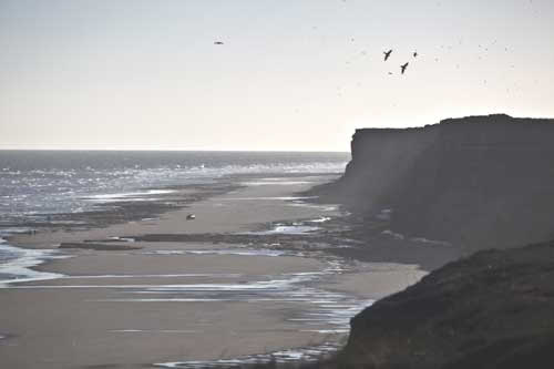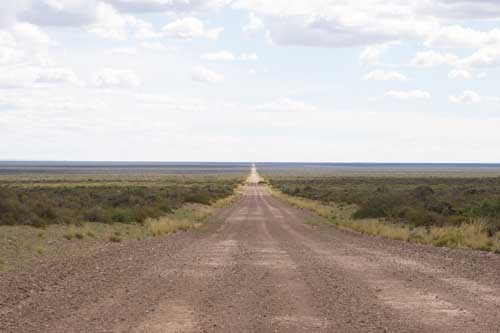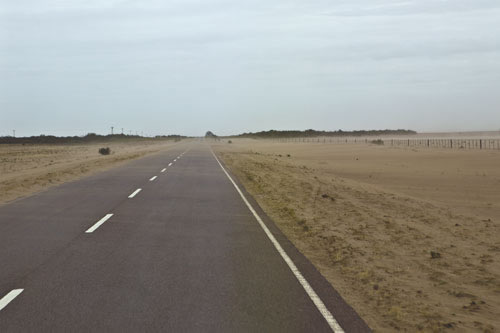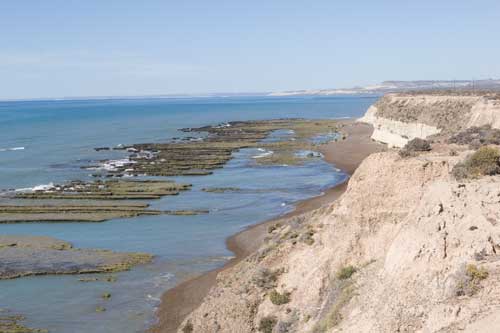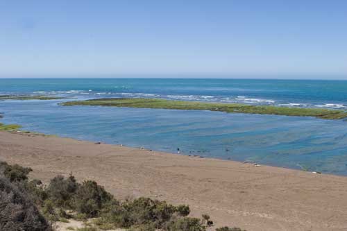 Punta Norte bei Ebbe, eine ganz andere Landschaft. Bei Flut ist alles unter Wasser. ..eine typische argentinische Landstraße Idylle an der Küste bei Rawson