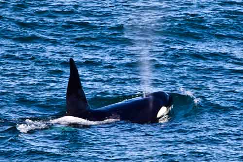 Mal gucken, wer so alles vorbeikommt.. und hier der Volltreffer : der Orca Mar in Punta Norte.