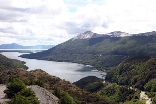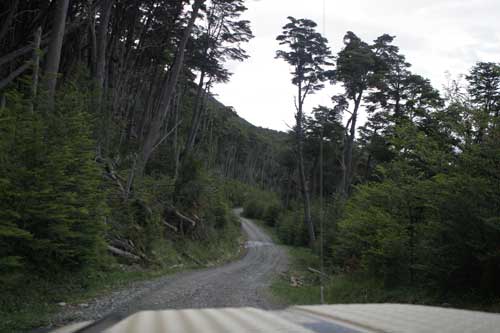 nun verlassen wir Ushuaia und fahren noch südlicher bis es nicht mehr weiter geht.. an Puerto Williams... und an der Estancia Harberton vorbei... dem Beagle Kanal entlang... durch wunderschöne Wälder mit bis zu 500 Jahre alten Lengabäumen... so, nun geht es mit dem Auto nicht mehr südlicher. Ende. auf dem Rückweg einige Delfine, die in Ufernähe den Fischen nachjagen um einen geeigneten Übernachtungsplatz zu finden, abseits der Straße, muß man schon mal durchs Dickicht... aber der Ausblick auf die verschneiten Berge bleibt dennoch. r ...und weiter geht es auf der Ruta 3 nach Punta Arenas, ohne uns lange irgendwo aufzuhalten sind wir geradewegs bis Punta Arenas durchgefahren hier gibt es sehr schöne, prunkvolle Bauwerke