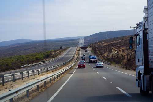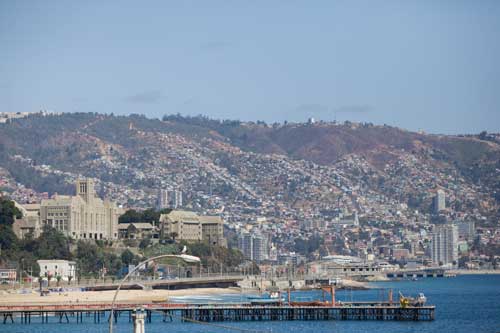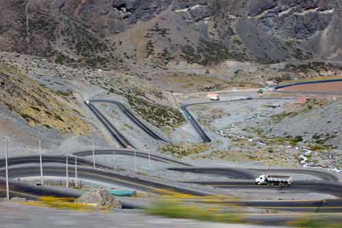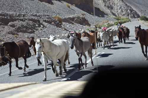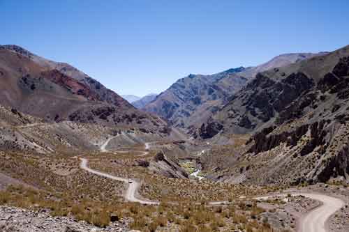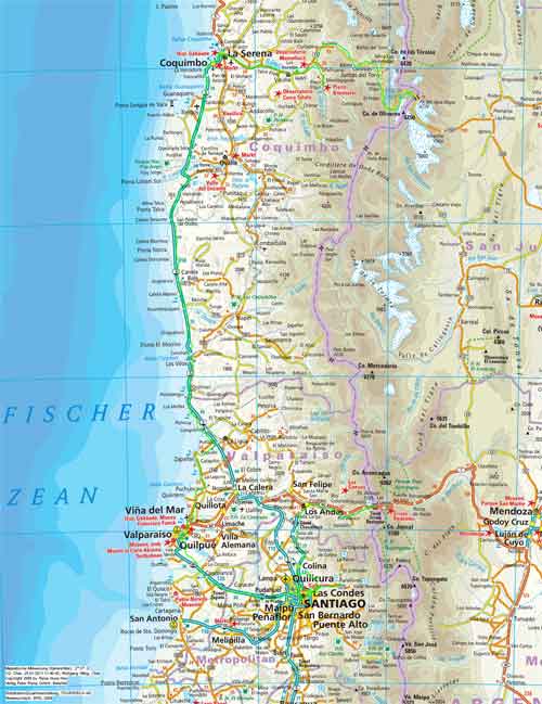 Paso Bermeio > Santiago > Valparaiso > La Serena Kurz nach dem Grenzübertritt nach Chile geht es auch schon sehr schnell runter von 3200m Passhöhe auf 2200m und das auf einer Länge von 15km... Anfahrt auf Santiago. Santiago, morgens um 7:30... noch nicht's los, auch hier gibt es nicht nur Hochhäuser, Das Museum der Schönen Künste wurde vom Erdbeben nicht verschont, im Großen und Ganzen sieht man aber nur selten Beschädigungen, die das Beben hinterlies. Reges Treiben an der Plaza, und immer wieder wird die moderne Architektur von der Historik unterbrochen. Wir verlassen Santiago Richtung Pacifico. Valparaiso, vor lauter Häusern sieht man den Berg nicht mehr. In der Innenstadt geht es richtig eng zu, viele kleine Gassen und viele Fahrzeuge. Die Panamericana nach Norden, gegenüber dem südlichen Teil der Strasse hat sie hier einiges an Charme verloren. So kommt es, dass wir sehr flott unterwegs sind. Schon bald sind wir in La Serena, schönes touristisches Städtchen, auch hier halten wir uns nicht lange auf und fahren in das Landesinnere... ...Richtung Valle del Elqui, das berühmt für den Piscoanbau ist, ...da kann ma net vorbeifahrn, oder!!! Wir besuchen das Observatorio Mamalluca, bei Vicuna Mal gucken, was es so gibt... ah, Sterne... oh, und der Mond Valle del Elqui, der Piscoanbau geht bis in die letzten Berghänge. Auf dem Weg zum Paso Agua Negra muss man mit so manchem Gegenverkehr rechnen. Der Pass selbst windet sich erst durch Täler, später durch bunte Berge an Eisfeldern, den sogenannten Büßern vorbei, bis auf 4780m, da wird die Luft ganz schön dünn. |