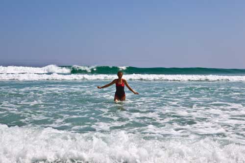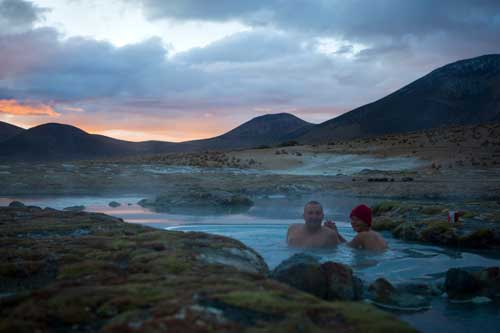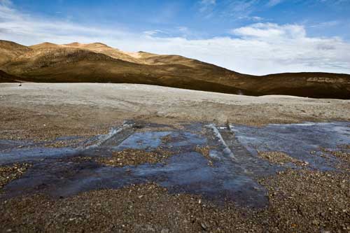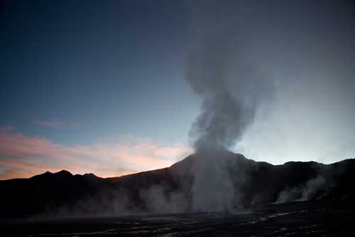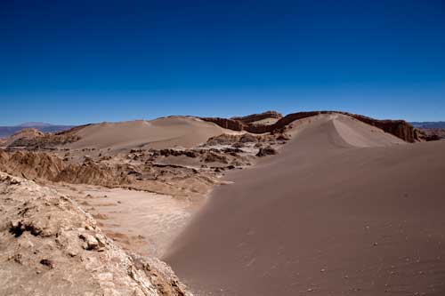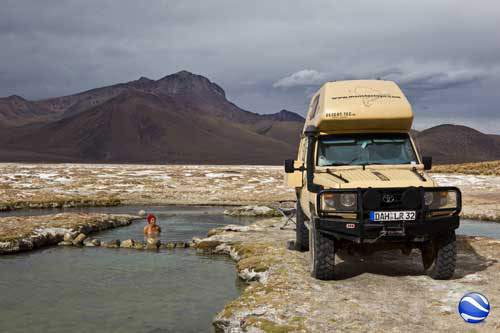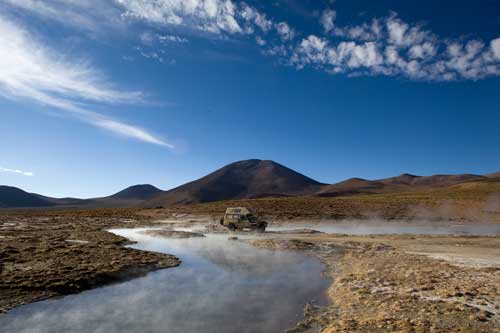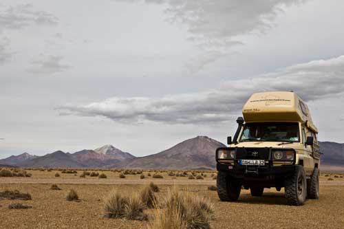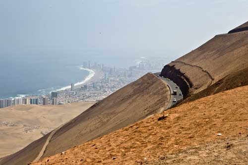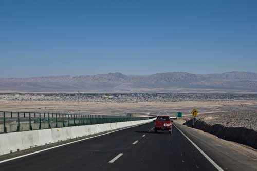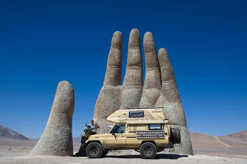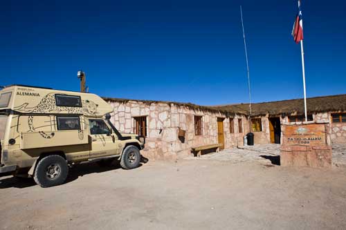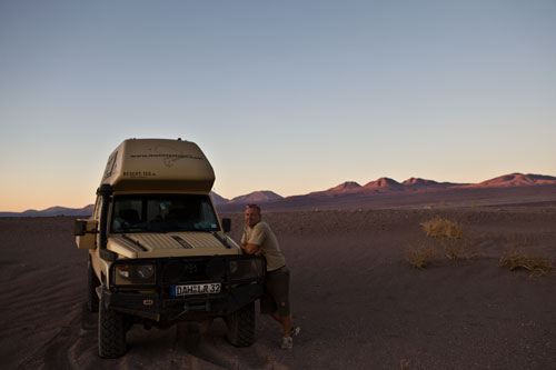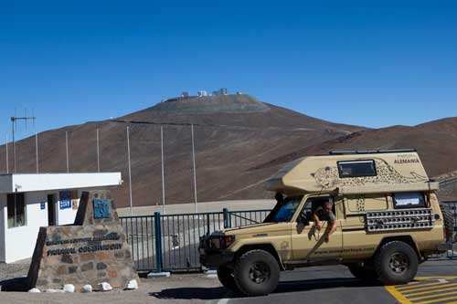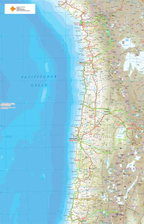 Kurz nach dem Grenzübergang von Argentinien nach Chile besuchen wir die Laguna Verde, auch hier gibt`s ein paar heiße Quellen Aber nun wird es Zeit für uns von den unmenschlichen Höhen von weit über 4000m runter zukommen. Wir wollen an die Küste. So fahren wir schnurstracks zum Pacifico nach Bahia Inglesia und anschliessend nach Caldera, einem sehr schönen Städtchen mit freundlichem Internet Cafe. Auf der Panameriana wird es nun sehr karg, links und rechts nur noch Sand und Felsen. So fahren wir durch Chanaral direkt zum Nationalpark Pan de Azucar, hier gibt es wunderbare Strände und super schönes warmes Wasser... Baden!! An der Küste entlang gibt es nun keine Strasse mehr, so fahren wir zur Ruta 5 bis wir wieder einen Weg finden, der die Küste entlang geht... ja, gefunden, die Ruta 1 führt an der Küste entlang nach Taltal. Hinten auf dem Hügel können wie es schon sehen, das Observatorium Paranal. Die Tore sind geschlossen, leider dürfen wir nicht rein, da es nur an den letzten beiden Wochenenden im Monat für Touristen geöffnet ist. Schade, da helfen uns auch die Reverenzen von Manfredo nichts, da die Leute, die die Führungen machen nicht auf dem Gelände sind. Macht nix, ein Stück weiter am Mano del Desierto sind wir allein und geniesen es. Antofagasta, pünktlich zur Stadtvisite ziehen auch schon Wolken auf, das trübe Wetter macht die Stadtbesichtigung angenehmer... Blick von ganz oben über die Stadt. Ein paar Kilometer nördlich der Stadt gibt es eine wunderschöne Steilküste, mit La Portada. Auf geht es nach San Pedro de Atacama... vorbei im Nationalpark Los Flamencos... ein wenig querfeldein Richtung... Toconaco... und schließlich nach San Pedro de Atacama. Ein schönes Städtchen, mit vielen Touristen, Kneipen und Geschäften noch ein wenig einkaufen für das Abendessen. Nächster Stopp, Valle de la Luna... skurrile Landschaften, sehr beeindruckend. Anschließend fahren wir zu den Geysiren, dem Nationalpark El Tatio, hier übernachten wir in 4300m Höhe... heftig. So können wir um 7 Uhr bei -5,4 Grad schon bei den Geysiren sein und das morgendliche Schauspiel beobachten. Anschliessend baden wir dann bei ca. 0 Grad im herrlich heißen Wasser. Über eine sehr selten befahrene Piste machen wir uns auf den Weg nach Chuquicamata, zu der größten Kupfermine Chile, ein riesen Loch: 4km lang, 3km breit und 1km tief Blick auf Calama, von der Mine kommend... Calama, mit schönen alten Gebäuden Nun machen wir mal einen etwas größeren Sprung. Es geht nach Iquique, noch ein Zwischenstopp am Pazifik. und dann die Ruta 1 immer der Küste entlang... nach Iquique nach einigen Tagen Campingplatz (Escuela de Parapente Altazor) und ausgiebiger Stadterkundung mit Corinna und Ralph, die wir hier kennenlernen, geht es weiter... wieder in die Anden, nochmal quer durch die Stadt. Die Stasse schlängelt sich in den Hang eingefräst immer höher bis zur Ruta 5, Unser Weg führt uns am Gigante de Atacama vorbei. Im Parque Nacional Vulcan Isluga besuchen wir die Geysiere von Puchuldiza... bei den Geysieren haben wir morgens - 2,5 Grad, so gibt es schon mal eine kleine Matschspur. Richtung Altiplano muß man mit den verschiedensten Verkehrsteilnehmern rechnen Altiplano, hier 4300m über dem Meeresspiegel. Am Salar de Surire angekommen, gibt es gleich ein heisses Bad in der Terma de Polloquere... ...Sonnenaufgang, Lufttemperatur um 0 Grad, Wassertemperatur ca. 37 Grad. leider sind 4283m zu hoch um länger zu bleiben, schade, hier war es voll super... Blick vom Ostufer über den Salar. Panorama vom Salar de Surire. Im Lauca Nationalpark... schauen wir der Sonne zu wie sie sich hinter dem Vulcan Parinacota für den Tag fit macht. Auf dem Weg nach Arica fahren wir an der Stadt Putre vorbei, die wie eine Oase zwischen den Bergen liegt. Wir durchstoßen die Wolkendecke als wir wieder runter auf erträgliche Höhen fahren. Nach Arica an den Pazifik, das ist für uns auch die letzte Station in Chile Wir können schon die Grenze zu Peru sehen. Tschüss Chile, war schön mit dir. |