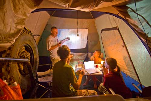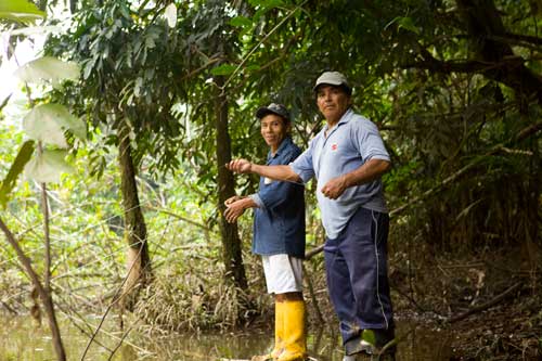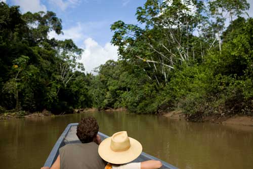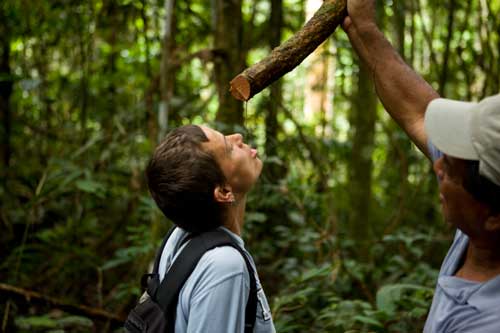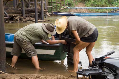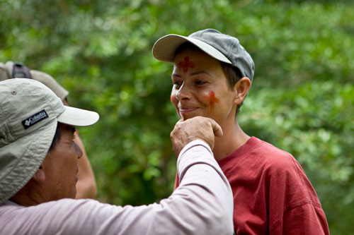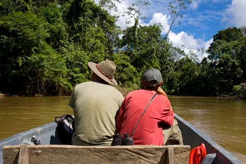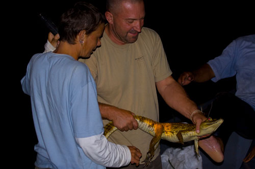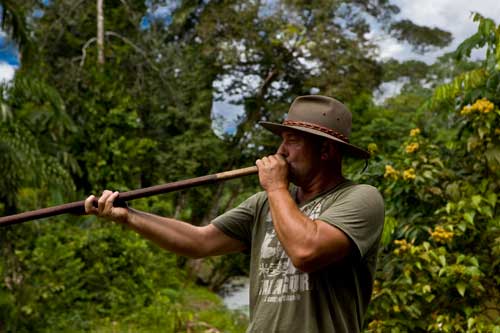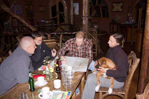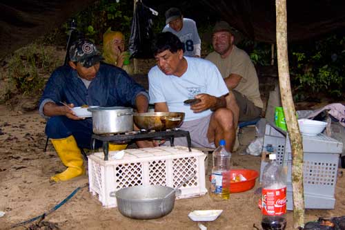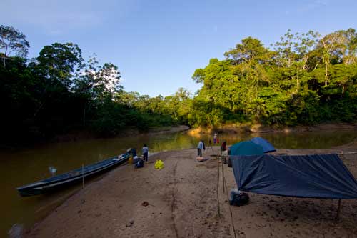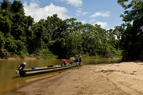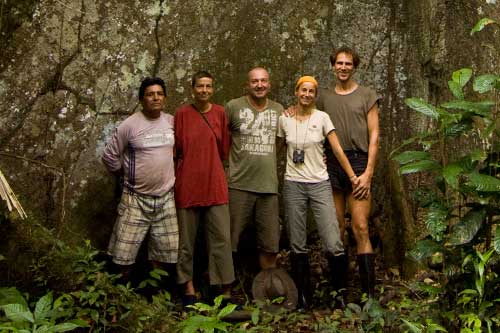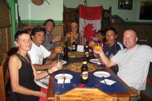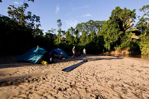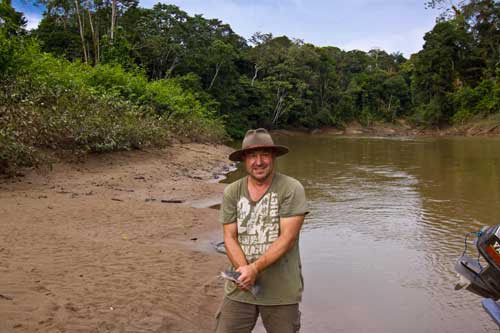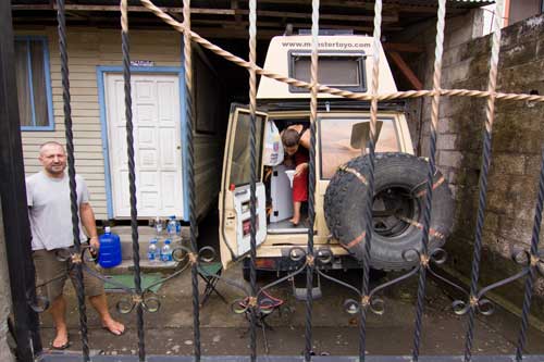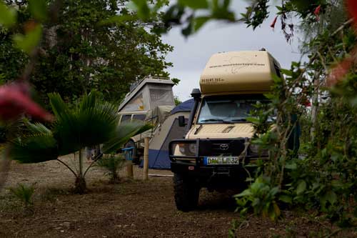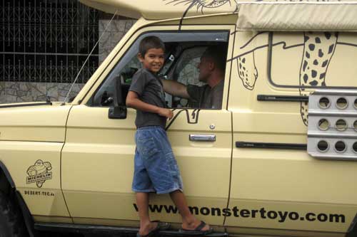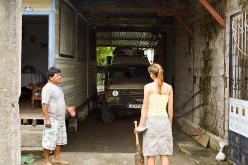 große Ansicht Guayaquil > Finca Chamanapamba > Misahualli > Coca > Quito > Tucan Weiter geht es, nun zu viert, zusammen mit den Tortugas, von Guayaquil aus Richtung Küste, noch schnell die Koordinaten eingeben... die Küste ist bald erreicht, ohne größere Stopps, leider ist das Wetter hier sehr regnerisch, Die Anlage, in der wir unterkommen vermietet kleine Häuschen und hat ein Restaurant mit WiFi, alles sehr schöne Bambuskonstruktionen. natürlich darf der Pool in so einer Anlage nicht fehlen Nach anhaltendem Regen wird es Zeit unser Pläne neu zu überdenken, vierstimmig beschliesen wir, die Küste zu verlassen und auf dem kürzesten Weg quer über die Anden Richtung Osten in den Dschungel zu fahren... anfangs kommen wir noch schnell voran, sehr gute Asphaltstrassen, die aber bald zu noch schöneren Schotter- und Sandpisten werden. Da wir die großen Hauptverbindungen meiden, wird es sehr ländlich und die Navigation nicht leicht. Es geht durch Bananenplantagen hindurch... über schmale Wege, die sich im Regen in schöööne Matschpisten verwandeln... bergauf und bergab geht nicht nur die Strasse, auch das Wetter ändert sich stündlich... wir kommmen aber gut voran und gemeinsam haben wir letztendlich auch den richtigen Weg gefunden... kurz nach Banos, der Eingang zur Finca Chamanapamba Am Fuße des Vulkans Tungurahua wurde die Finca vor Jahren von einer deutschen Familie aufgebaut, sie ist ein wahrer Ruhepol und Ausgangspunkt für Wanderungen. Eine mit der Natur verbundene Architektur, die Bäume wurden nicht einfach abgeholzt, sondern mit eingebunden. Für Übernachtungen stehen Cabanas zur Verfügung. Die Baumaterialien sind weitgehend Naturstoffe, hier fühlt man sich so richtig wohl Hier hilft uns Olli, der Sohn des Hauses, bei unserer weiteren Reiseplanung. Und schon geht es wieder weiter, wir sind unterwegs von Banos nach Misahualli, unter einem Wasserfall hindurch, das freut auch den Toyo... Am Eingang zu der Cascada Pailon del Diablo noch schnell eine Schlange um den Hals und dann gehen wir einen 30minütigen Weg runter zum Wasserfall Ankunft in Misahualli, von hier aus starten schon einige Touren in den Dschungel wir begnügen uns mit einer kleinen Dorfbesichtigung, am Strand von Misahualli kann man schon die ersten Affen beobachten auf dem Weg nach Coca geht es teilweise wieder auf über 1000m hinauf, von hier hat man eine schöne Übersicht auf das Urwaldgebiet von Ecuador In Coca angekommen haben wir uns schnell für eine 4tägige Dschungeltour mit Wymper Torres, alias Catcha entschieden. Statt Luxuslodge gibts Übernachtung im Zweimannzelt. Ein großer Vorteil dieser Entscheidung ist, dass unsere Fahrzeuge sicher auf dem Grundstück von Catcha untergebracht sind und wir vor und nach der Tour dort übernachten können. Die chaotische Vorbereitung von Catcha machte uns teilweise etwas skeptisch, ob wir wirklich das Richtige gebucht haben. Doch letztendlich einen Tag später als geplant starten wir. Zuerst gehts mit dem Bus zwei Stunden Richtung Süden zum Rio Shiripuno, dort wartet unser Boot. schnell noch Außenborder wechseln und los gehts erster Stopp nach einer knappen Stunde ist ein Indianerdorf, dort bekommen wir Unterricht im traditionellen Jagen mit Blasrohr und Giftpfeil wahrscheinlich würden wir verhungern, wenn ich so fürs Essen sorgen müsste zur Verteidigung reicht die Kriegsbemalung, zur Abschreckung der Feinde sind hier keine Waffen mehr nötig... den Fluss immer weiter runter und immer tiefer in den Regenwald kurzer Stopp zum Mittagessen nicht alle Tiere bringe ich vor die Linse auch diese Schildkröte will nicht abgelichtet werden aber die ein "ich weiss nicht, wie er heisst"-Vogel wir übernachten auf Sandbänken im Zelt, das hatten wir schon lange nicht mehr abends sorgt Ralph für das Lagerfeuer kurzer Landgang, nach einigen Metern tauchen schon die ersten Giganten auf von rechts nach links: Catcha, Brigitte, Wolfi, Corina, Ralph Bootsführer Mario ein Blick ins Dickicht lohnt sich, man sieht immer irgendetwas Affen exotische Pflanzen Papageien Fische. Aber der ist nicht zum Gucken, der ist zum Essen... Nachtlager bei den Dschungelwanderungen erklärt uns Catcha so manches über die Pflanzen und wie die Indianer sie nutzen so wie hier, die Wasserlianen sind gut gegen Durst und wieder werden wir beobachtet, von den Baumgipfeln mustern uns ein paar Affen im Regenwald ist es vernünftig mit Allrad unterwegs zu sein... unser Abendessen ist noch im Wasser zum Erfolg reicht ein Stückchen Fleisch und ein paar Minuten warten Stöckchentest, schnapp schnapp auch diese Vorführung kann uns aber nicht abhalten ins abkühlende Nass zu springen und wieder ein neugieriger Bewohner des Regenwaldes aus sicherem Abstand beobachtet er uns nach dem Abendessen geht es heute im Schutz der Dunkelheit auf die Jagd mit der Taschenlampe angeleuchtet, verraten die rotfunkelnden Augen der Kaimane ihr Versteck, so geblendet ist es mit ein wenig Geschick und Mut möglich diese Reptilien zu fangen aber Vorsicht, die vielen kleinen und spitzen Zähne können schmerzhaft sein nach einem deftigen Frühstück brechen wir wieder auf Richtung nach Hause immer flußaufwärts am Indianerdorf vorbei Nun ein großer Sprung... zuhause noch ein gemeinsames Abendessen als Dankeschön an eine super schöne und unvergessliche und vor allem eine sehr persönliche Dschungeltour. Danke Catcha und Mario, ihr habt uns super verwöhnt und sicher wieder zurückgebracht. am nächsten Morgen geht es nun weiter nach Quito das Wetter ist immer noch sehr wechselhaft aber das macht nichts, ein wenig Abkühlung nach der Dschungeltour tut ganz gut Quito, immer noch bewölkt und regnerisch die Altstadt gefällt uns sehr gut viele schmale Gassen Doch wir wollen schönes Wetter, so entscheiden wir uns mit den Tortugas zusammen nach Kolumbien, an die Karibikküste durchzustarten letzte Station in Ecuador ist Tucan hier in Tucan suchen wir noch eine Übernachtungsmöglichkeit, um morgen ganz früh an der Gre