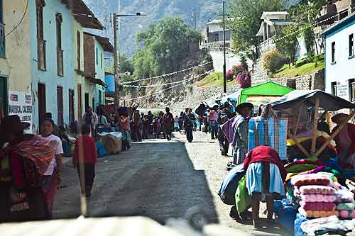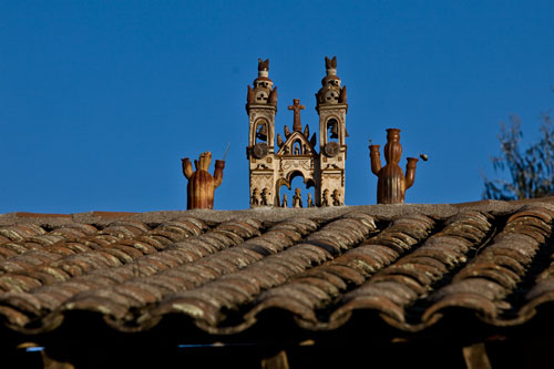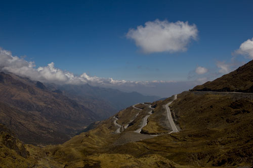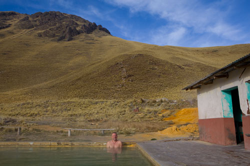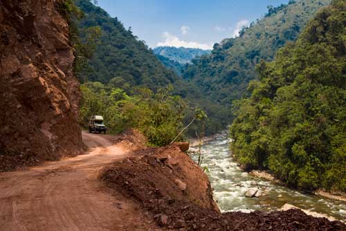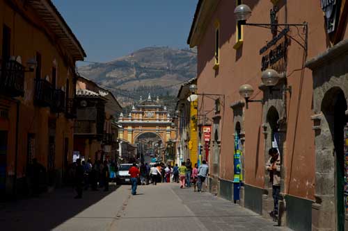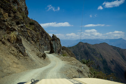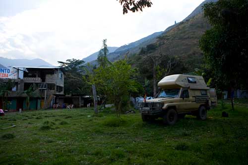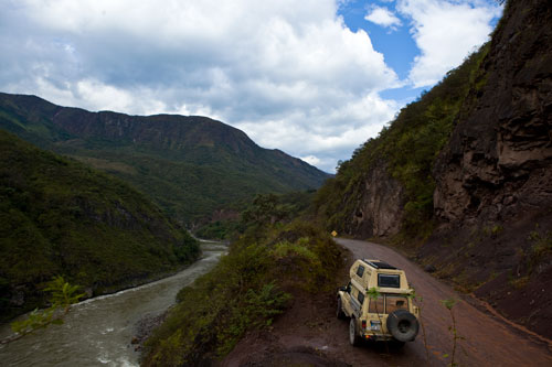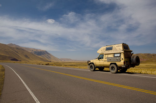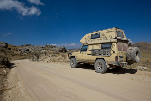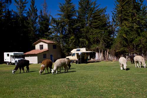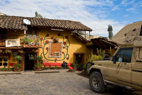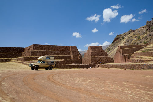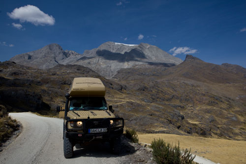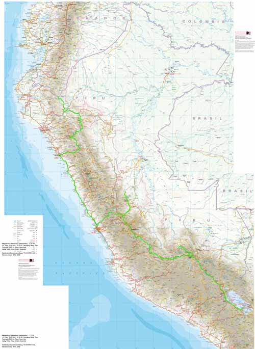 bis es dann letztendlich rauf auf die Berge geht, in einer Höhe von 3300m geniessen wir eine super Aussicht auf die Anden und deren Täler... Die Strasse ist nicht nur atemberaubend wegen der Aussicht, die sie uns bietet, sondern auch ihrer Beschaffenheit wegen. Immer wieder wird sie extrem schmall, links geht es steil bergauf und rechts weit den Abgrund hinunter... hoffentlich kommt nun kein Gegenverkehr. ![]() So arbeiten wir uns bergauf, bergab durch die wunderschöne Andenlandschaft, rauf auf 3300m runter auf 1000m, um über den Rio Maranon zu kommen und dann gleich wieder hoch auf 3000m. So benötigen wir 8 Stunden für die ca. 220km von Leimebamba bis Cajamarca. ![]() Hoch über der Stadt Cajamarca auf der Hacienda San Vicente, ![]() gibt es einen schönen Stellplatz für uns... ![]() alle Räume sind sehr urig gestaltet und eingerichtet, die Bar genauso ![]() wie das Restaurante und die Zimmer, schön. Nächtlicher Stadtspaziergang, vorbei an der Kathedrale. Sie besteht aus Vulkangestein, wurde aber trotz 300 Jahren Bauzeit nicht fertig gestellt... quer über den Plaza de Armas... zur Iglesia de San Francisco, stammt aus dem späten 17. Jahrhundert Aufbruch, runter geht es in die Stadt, durch kleine Gassen, vorbei an der Plaza und raus auf die Ruta 3N nach Cajabamba... auch diese Stecke führt in schwindelnde Höhen durch die Cordillera Central, dem mittleren Teil der Anden... den kleinen Lkw gegeüber in der Felswand sieht man kaum, doch er wird noch sehr groß vor uns auftauchen und hoffentlich an einer Stelle, die breit genug ist für uns beide. Noch ahnen wir nicht, dass sich am Rio, kurz vor Chugay, unser Route schlagartig ändert... immer wieder kleine Dörfer mit noch kleineren Gassen, gut dass unser Toyo so schlank ist Also, aufgeht es nach Lima... ...durch den Küstennebel hindurch, der den ganzen Tag nicht verschwindet und es hier ganz schön trostlos aussehen lässt. Na ja, es ist hier ja nun auch Winter. Kurz vor Lima, fahren wir wieder in das Landesinnere, und man sieht, das Wetter ist schon besser, noch schnell über den Pass mit 4700m, tolle Aussicht. In Tarma auf 3070m, wieder eine vernünftige Höhe, in der wir auch wieder ohne Probleme übernachten, Hacienda La Florida... ... ein sehr schönes Anwesen, der Innenhof ist rundum mit Gebäuden eingefasst und nur durch ein schmiedeeisernes Tor zu erreichen. Weiter führt uns unsere Route über Oxapampa nach Pozuzo, eine im Jahre 1859 gegründete österreichisch - deutsche Kolonie. typische Holzhäuser im Alpenstil Parque Nacional Yanachaga Chemillen, noch selten besucht, bietet aber einiges an Flora und Fauna, wie beispielsweise den bedrohten Brillenbär, denn wir leider nicht zu Gesicht bekamen, aber auch die Vielzahl von Flüssen und Wasserfällen sind beeindruckend. Über eine 4x4 Strecke, die in San Ramon abzweigt, wollten wir die Dschungel Lodge Pampa Hermosa besuchen. Leider müssen wir umkehren, da der Weg sehr schmal wird und nur Fahrzeuge mit "normaler" Höhe unter den Felsüberhängen durchkommen. Leider... So machen wir uns weiter auf den Weg nach Süden über Huancayo und genießen die wunderschönen Aussichten, da wir meist hoch über den Flußtälern die Berghänge entlangfahren, nach Izcuchaca, einem sehr netten und lebhaften kleinem Städtchen. Der Bahnhof und die Plaza, der Mittelpunkt des Geschehens machen einen gepflegten und aufgeräumten Eindruck auf uns, was man hier in Caceres nicht behaupten kann, wir müssen uns mitten durch das Marktgewühl durchzwängen, aber auch hier haben die Leute immer einen netten Gruß parat. Den Rio Mantaro entlang Richtung La Quinua, das Städtchen ist berühmt wegen seines Kunsthandwerks, wie den handgefertigten Keramikarbeiten, die hier richtig günstig sind. Die typischen Tonkirchen auf den hiesigen Hausdächern sollen die Bewohner vor den bösen Geistern schützen... aber auch als Fotomotiv eignen sich diese Tonkunststücke allemal. Weiter nach Süden kommen wir durch Ayacucho, wurde 1539 gegründet und hat ca. 100.000 Einwohner. Hier die Kathedrale aus dem Jahr 1671. Interessant und zum Bummeln einladend sind auch die vielen kleinen Gassen rund um die Plaza Sucre, die viele kleine Geschäfte verbergen. Auf unserem weiteren Weg Richtung Cusco führt uns die Strasse wieder einmal auf 4200m. Einfach nur die Aussicht geniesen, wunderbar... Anfahrt auf Cusco, von hier hat man einen guten Überblick über die Stadt, aber die ganzen Ausmaße mit den Siedlungen rund um das Tal in den Berghängen kann man nur erahnen. In der Mitte der Stadt, wie meist, die Plaza de Armas mit der Kathedrale, die mit einer Bauzeit von 100 Jahren aufweisen kann. Die Plaza lädt auch abends ein zum Spazierengehen oder zum Shoppen, auch die vielen Lokale laden dazu ein, den Abend hier zu verbringen. Um die Gassen von Cusco zu erforschen ist schon ein wenig Kondition gefragt, denn die Stadt ist zum Teil die Hänge hinaufgebaut und mit einer Meereshöhe von ca. 3300m selbst schon anstrengend genug. Von Cusco aus kann man jede Menge Touren buchen, wir wollen in den Manu Nationalpark fahren und buchen eine 7 Tage / 6 Nächte Dschungel-Tour.