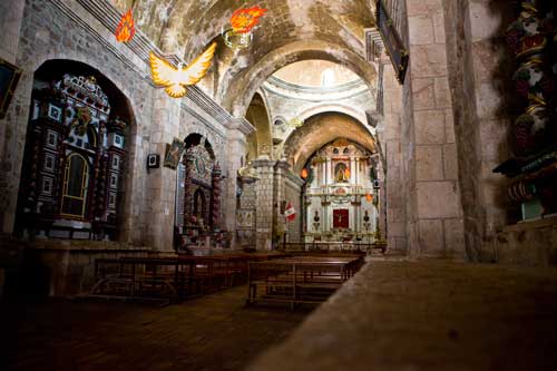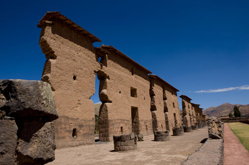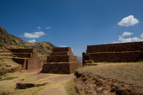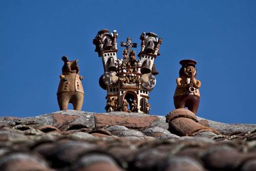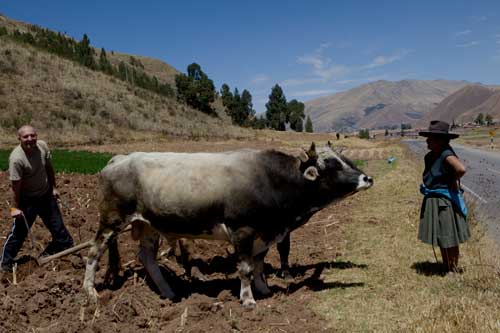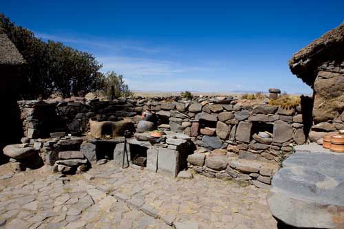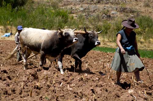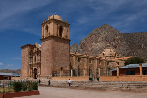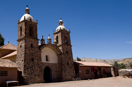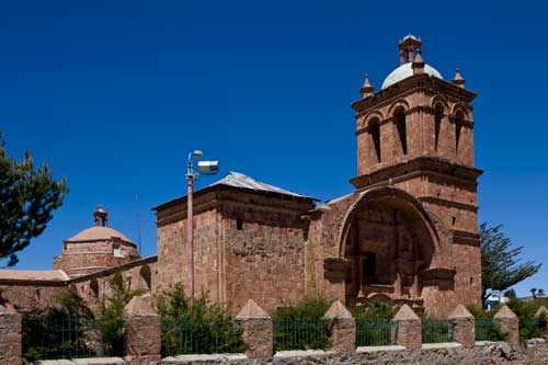 Nun sind wir auch schon wieder auf dem Rückweg nach Cusco... mit einem Zwischenstopp in Ollantaytambo, um die Ruinen einer Inka-Festung zu besuchen, sie erstreckt sich hoch über der Stadt. Zurück fahren wir durch das Valle Sagrado über Pisac nach Cusco. Richtung Titicacasee machen wir Halt in Oropesa, einem kleinen Städtchen, das berühmt ist für die Brotbackkunst. Unser Weg führt uns immer wieder an Ruinen vorbei so wie hier die von Pikillaqta. Der Alltag der Bauern ist nicht leicht, es gibt hier kaum Maschinen, die die Arbeit erleichtern. So beschloß ich ein wenig zu helfen und pflügte 2 Reihen, einmal auf und ab, dann ging mir die Puste aus, kein Wunder bei 3800m Höhe. In San Pablo besuchen wir den Tempel Wiracocha "Raqchi" Webkunst am Plaza von San Pablo Weiter geht es auf dem Hochplateau Richtung Puno / Titicacasee. Kurzer Stopp, um in den heissen Qeullen von Aguas Calientes ein Bad zu nehmen vor uns erstreckt sich das nördliche Ende des Altiplano. Pucara, von der Strasse aus sieht man diese Kirche und sie ist allemal einen kleine Reiseunterbrechung wert, sehr schlicht, fast schon heruntergekommen, aber gerade deswegen wunderschön. Weite Ebenen säumen die Strasse... Sillustani, die Grabtürme lassen wir uns auch nicht entgehen, die bis zu 12 Meter hohen Türme stammen von der Colla-Kultur. Ein typisches Anwesen der Quechua-Indianer... die Schlafräume befinden sich in einer kleinen Lehmhütte, alle Räume sind eigentlich eine kleine Hütte, die Küche befindet sich im Freien, kein so großer Unterschied zu unserer. Durch Puno durch und immer dem Titicacasee entlang nach Pomata, hier machen wir den letzten Stopp, am Plaza mit der Iglesia Santiago Apostol. |