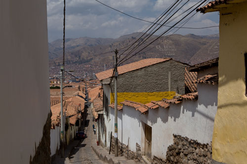 Hoch über Cusco auf dem Camping "Quinta Lala" haben wir unser Hauptquartier eingerichtet. Hier können wir auch unseren Toyo sicher parken, solange wir im Dschungel unterwegs sind. In Cusco finden sich immer wieder kleine Gassen mit Souveniergeschäften. Unser nächstes Ziel ist Machu Picchu, runter in das Urubambatal mit der gleichnamigen Stadt Urubamba... und wieder hoch auf über 4000m, und runter nach Ollantaytambo... nach Santa Teresa, hier bleibt der Toyo wiedermal stehen und wir fahren mit dem Taxi zur Hydroelectrica und steigen um auf die Eisenbahn nach 40 Miunten erreichen wir Aguas Calientes, hier übernachten wir in einem Hostal, um am nächsten Morgen um 5:00 mit dem Bus nach Machu Picchu zu fahren... ----------------------------------------------------------------------------------------------------------------------- Mehr Info und Eindrücke von Machu Picchu. ----------------------------------------------------------------------------------------------------------------------