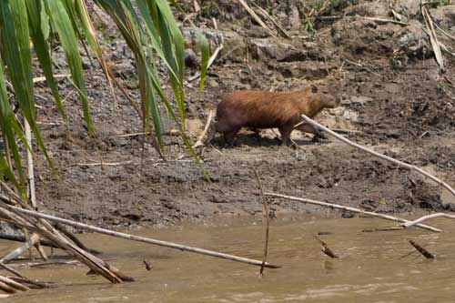 ... erstmal Erleichterung bei allen Beteiligten, nun fehlt aber die Zeit um eine vernünftige Weiterreise zu gestalten, nun heißt das Ziel "Ankommen vor der Dunkelheit" da bleibt auch keine Zeit für Fotostopps und Tiere beobachten... ... nur kurz anlegen um die Formalitäten zu erledigen Einfahrt in den National Park MANU, schnell registrieren und WC... und schnell ein Foto, Lelius' Urania Moth (Spannweite 7cm), schon geht es weiter, richtig schade, denn hier gibt es viel zu sehen , aber langsam wird es auch dunkel... Sonnenuntergang auf dem Rio Manu, nun sind wir auch schon an Land und marschieren die letzten 20 Minuten zu Fuß zur Lodge. Als wir an der Manu Lodge ankommen, ist es schon Nacht. Keine Erkundungsgänge mehr,um zu sehen wo wir denn so angekommen sind... das Innere der Unterkunft sieht ganz vernünftig aus. Naja, nun noch Abendessen nud dann rein unter die Moskitonetze, denn morgen werden wir ganz früh starten, um ein wenig verlorene Zeit aufzuholen. Am nächsten Morgen steht erstmal eine kurze Besichtigung der Manu Lodge auf dem Programm, ist ja ganz in Ordnung, schön mitten im Dschungel an einem See gelegen , das Gebäude selber hat auch schon bessere Zeiten gesehen, man darf halt nicht so genau hinsehen, auch die Toiletten und die Duschen sind außerhalb in einem separaten Gebäude untergebracht, das ist auch ein bischen blöd. Am ersten Tag machen wir eine ausgiebige Wanderung um die Lodge herum, hier gibt es viele Wanderpfade mit den unterschiedlichsten Beschaffenheiten und Längen. dies hier sieht aus wie unsere Tannenzapfen, ist aber eine Blüte eine harmlose Hornspinne die kenn ich nicht... Tausendfüssler (länge 9cm) Raupe (5cm) Grashoper (3,5cm) und immer wieder Blumen, die die Baumstämme hinaufranken Piratic Flycatcher (15cm) Tropical (23cm) Red-capped Cardinal (17cm) und noch mehr Grashoper in verschiedenen Farben und Größen tolle Bäume, von unten den Stamm hinauf fotografiert Blick über den Dschungel Sonnenuntergang über der Selva Spectaclend Caiman erreichen eine Länge von bis zu 2m Primärwald, hier kann man die Ausmaße der Wurzeln gut sehen, die bis zu 50m lang sind. Neotropic Cormoran (69cm) Hoatzin (64cm) Amazon Kingfisher (28cm) Yellow-rumped Cacique (30cm) Im Salvador Lake ist eine Giant Otter Familie zuhause, die Riesen Otter erreichen eine Länge incl. Schwanz von 2m. Black Spider Monkey (50cm) Spectaclend Caiman Snowy Egret (61cm) Yellow-spotted River Turtle (68cm) unsere Reisegruppe mit Guide Raupe (6cm) Otorongo Lake Auch hier gibt es die Yellow-spotted River Turtle, und den Black Caiman, der eine Länge von 6m erreicht, nicht ganu ungefährlich. Da sind uns diese Gesellen schon lieber, Red Howler Monkey (55cm), obwohl bei diesem Gebiß, auch wir sind für die Affen interessant bis auf 1,5m kommen sie an uns ran, ein tolles Erlebnis, wilde Affen so nah zu sehen. Nicht nur ein Tag zu Ende, nein, nun ist auch die Dschungelreise fast zu Ende... zurück geht es mit dem Boot über den Manu River und den Madre de Dios River bis kurz vor Porto Maldonado, das wird so 8 Stunden dauern.. hier noch ein Capybara (120cm), nun verlassen wir das Boot und setzen unsere Fahrt über Land fort nochmals 2,5 Stunden mit dem Taxi, in Porto Maldonado quartieren wir uns in die Wasai Lodge ein. Die Lodge liegt am Ufer des Rio Madre de Dios und die Unterkünfte befinden sich in kleinen Hütten mit je 2 Zimmern, schön geräumig, sauber und mit WC und Dusche ausgestattet. Am nächsten Tag bringt uns der lodgeeigene Shuttle zum Flughafen, mit dem Jet geht es zurück nach Cusco... über die Anden rein in die Metropole, die schön zwischen den Bergen eingebettet liegt, eine schöne Tour. Bis auf die Panne mit dem Boot hat alles super gepasst, die Unterkünfte waren gut, die 2 Guides waren klasse, das Wildlife war sehr abwechslungsreich und üppig, der Preis vielleicht zu hoch... Die zwei Guides, die für mehrere verschiedene Agenturen arbeiten, sagten uns, dass dies die ersten Probleme mit diesem Veranstalter waren. |
