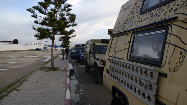 Nach den Zollformalitäten sammeln wir uns kurz nach dem Hafengelände...