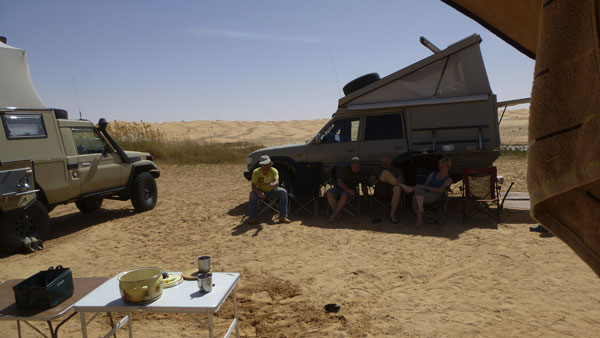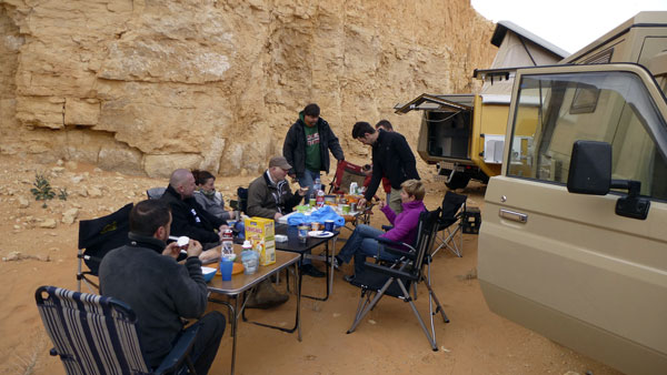 Am nächsten Morgen ist der Wind wieder stärker geworden und wir ziehen zum Frühstuck ein paar hundert Meter weiter um zu einer schützenden Felswand.