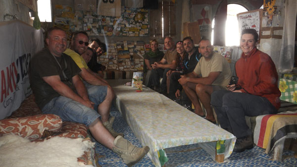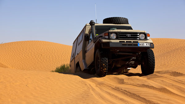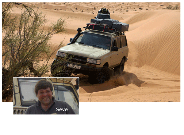 Nun ist Ende mit Asphalt, vom Steinbruch aus fahren wir quer über Stock und Stein und manchmal auf vorhandenen Tracks Richtung Ksar Gilane. Vorbei an einem Cafe, eine willkommene Abwechslung, so dachten wir.
