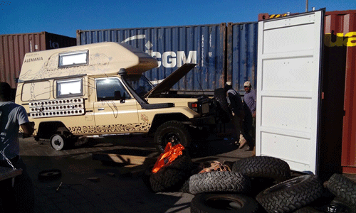 So nun geht es los mit dem Verschiffen des Monstertoyo`s nach Namibia Afrika...