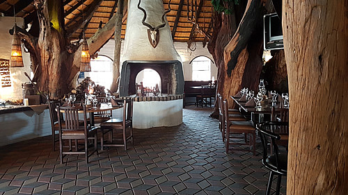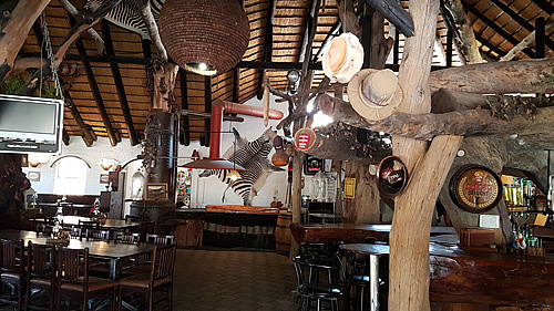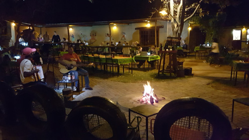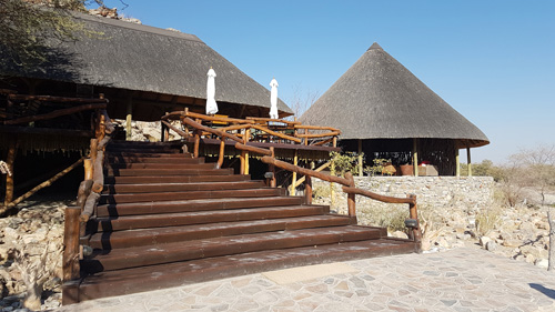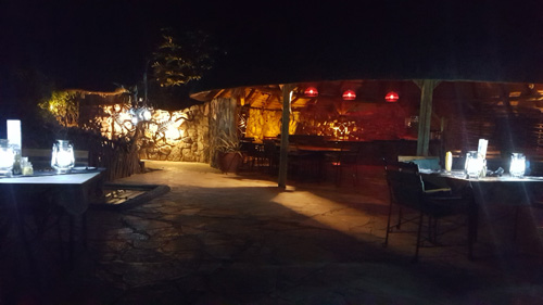 schönes einfaches Restaurant mit Livemusik und Lagerfeuer Zugang zu den inneren Räumen, wie Souvenirshop und Bar www.etoshanationalpark.org/de/