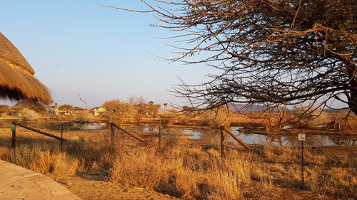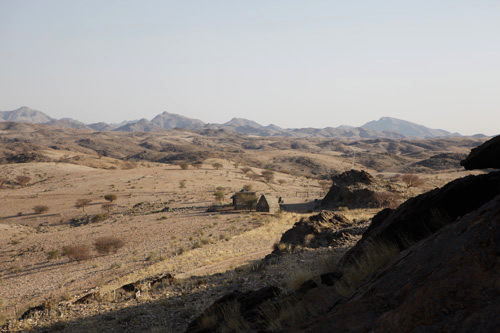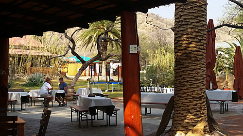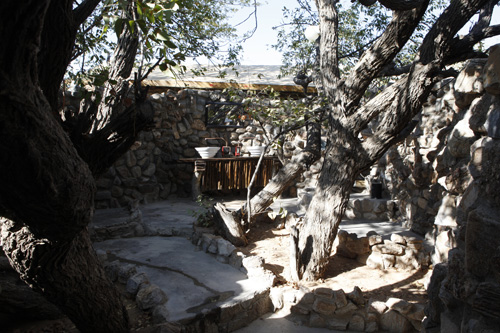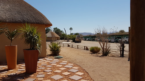 Khowarib Lodge Restaurant Sanitäranlage der Zimmer, alles im Freien, sehr schön weiter Richtung Küste
