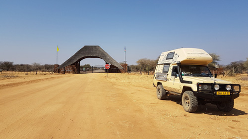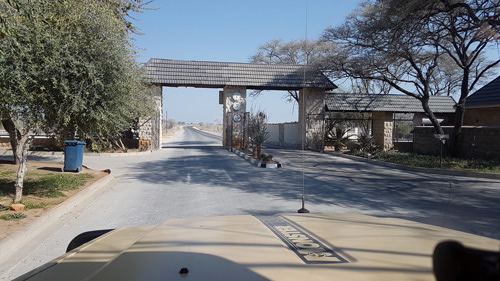 die Löwen ruhen sich im Schatten der wenigen Bäume aus einer hatte sich doch in der Nähe vom Weg niedergelassen :-) das westliche Galton Gate grobe Richtung Atlantikküste... jetzt wird es erst richtig staubig