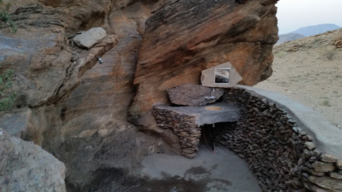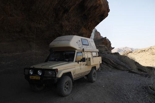 Zwischenstopp auf einem einmaligen Campingplatz der Stellplatz ist ca 1,5km von der Farm entfernt und oben in einer Felshöhle Blick vom Platz aus die Sanitäranlage, jeder der drei Plätze hat seine Eigene unter freiem Himmel