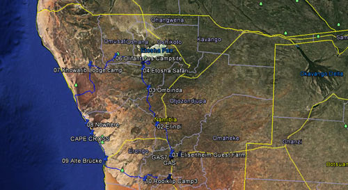 Übersichtskarte nach 10stündigen Flug in Windhoek